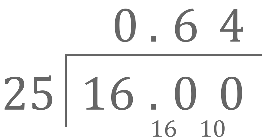 If we did not have Law II, to approach this question we’d first have to figure out \frac{16}{25} as a decimal, which we could do with long division: